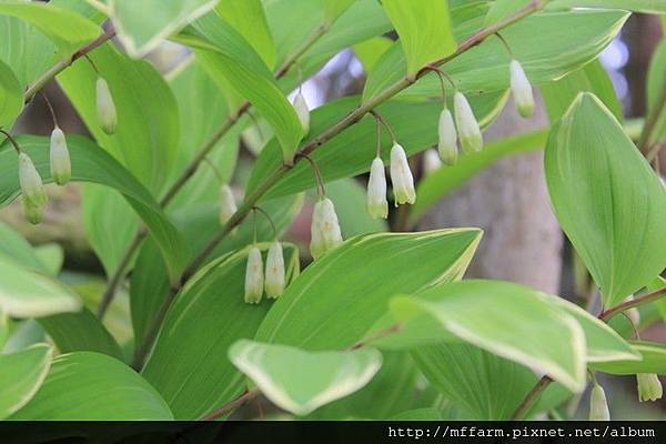 鳴子百合的花像小鈴噹掛在枝上。