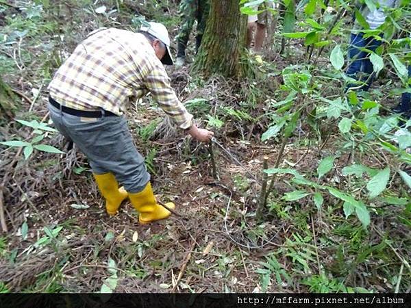 農場賽德克族同事正為大家示範抓捕山豬的陷阱。