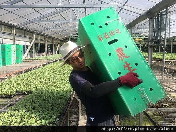 在第一天的工作時,內容完全超出我的想像,並且更具商業與經濟性質,以往我記憶中的農場是採收與種植蔬果,而這邊主要是在育苗,所以我們的第一份工作便是學習如何將穴盤苗裝箱和擺上架子,一開始我們的動作總是比大哥、大姊慢上許多,一個不小心手臂還會被塑膠箱給劃傷,一整天下來甚至手臂酸痛,然而撐過了最辛苦的前幾天加上日復一日的重複這些步驟,我逐漸抓出訣竅和省力的方法,分工合作下甚至能和資深員工並駕齊驅,讓我非常開心,內心感到小小的驕傲。