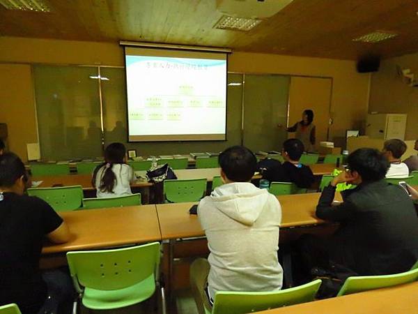 晚間簡報,環境教育人員郁葶以「專業人力」、「資源特色」、「營運管理」及「活動方案」等四要素為架構,分享山地農場的想法及實踐。並透過SWOT分析檢視自身場域的優劣勢、機會或威脅,檢視環境教育場域經營的方向。