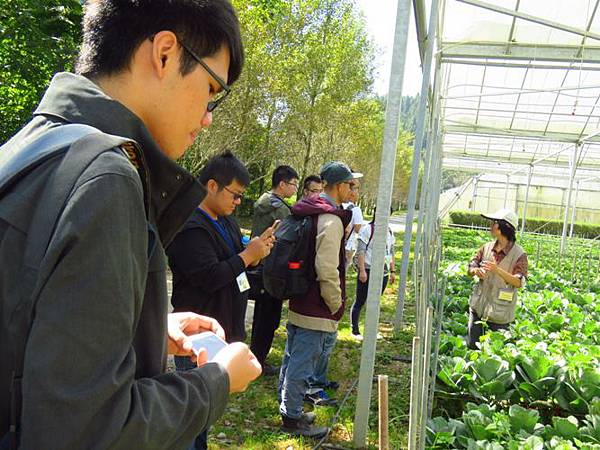 接著參觀農場的有機農業生產區,分享農場不使用農藥、化學肥料的做法。夥伴當中亦有從事農業相關的場域,現場互相交流彼此的經驗。