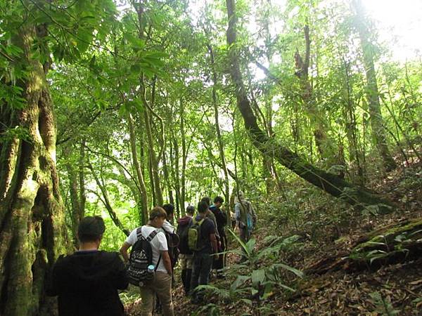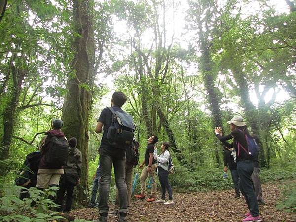 來到了原始森林入口處,一棵參天的紅楠,樹幹上攀附了各種植物,吸引學員們佇足欣賞。