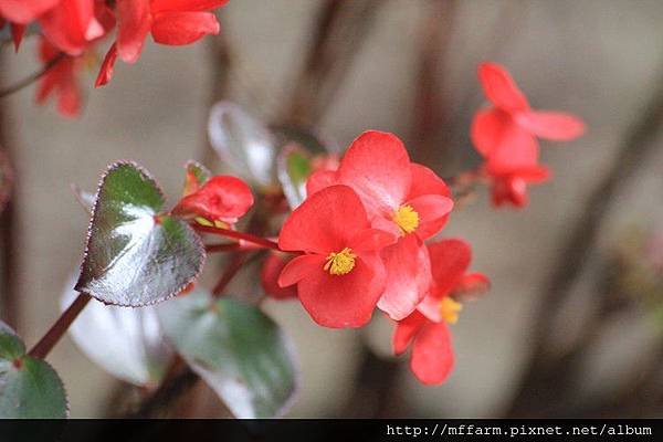 四季秋海棠的紅花與綠葉是最佳拍檔。
