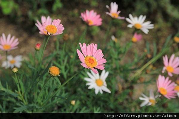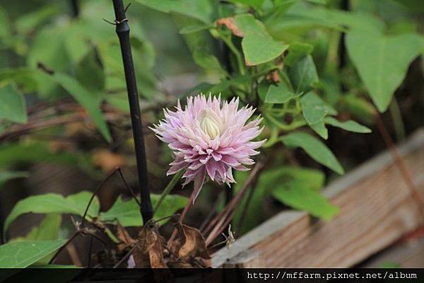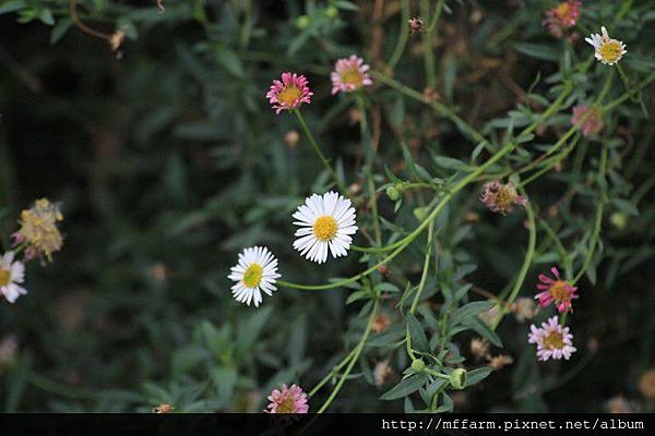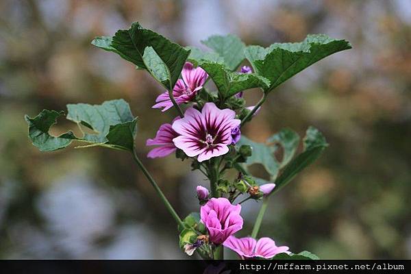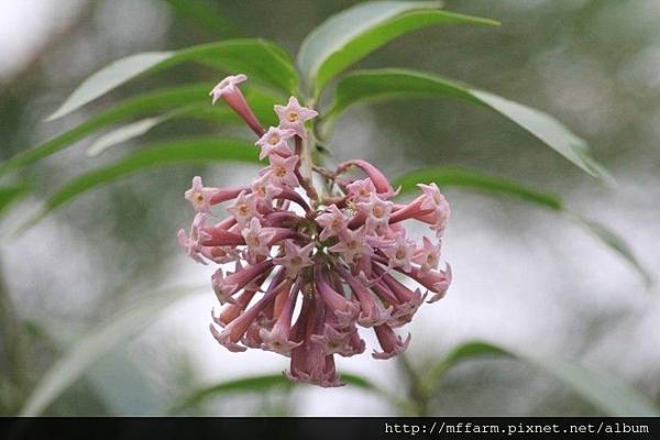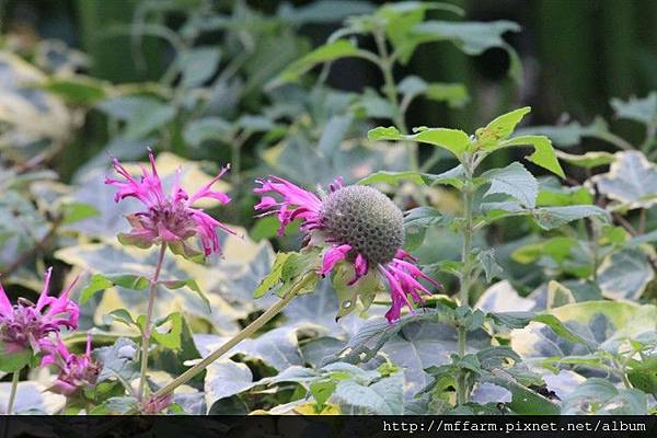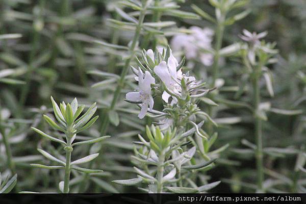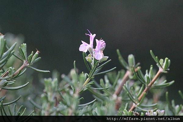 迷迭香的粉紅色小花躲藏在枝葉間。