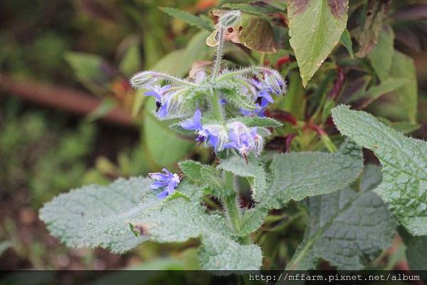 琉璃苣的花外面佈滿細毛。