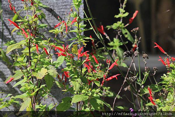 鳳梨鼠尾草的花如一隻隻紅通通的蝦子。