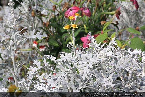 銀葉菊葉子摸起來像絨布的感覺。