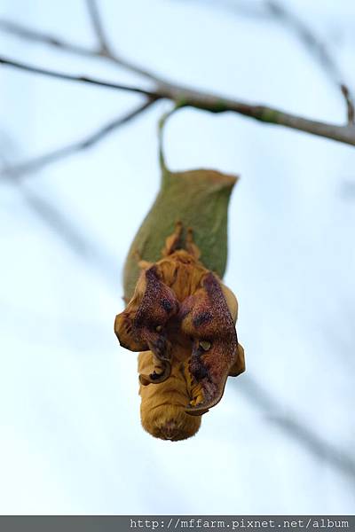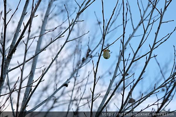 聖誕節前夕,所謂的平安夜,對人類而言,或許這是吃大餐或交換禮物的有趣日子,但對住在梅峰的其他生物們,這個節日會有特別的意義嗎?於是決定下班後去散散步,行至白楊步道,雲甚厚,葉已凋零的枯枝後方,顯得一片蒼茫。抬頭望去,枝枒間掛著一對對的銀目天蠶蛾,互相傳遞著彼此的情意。
