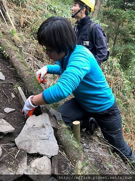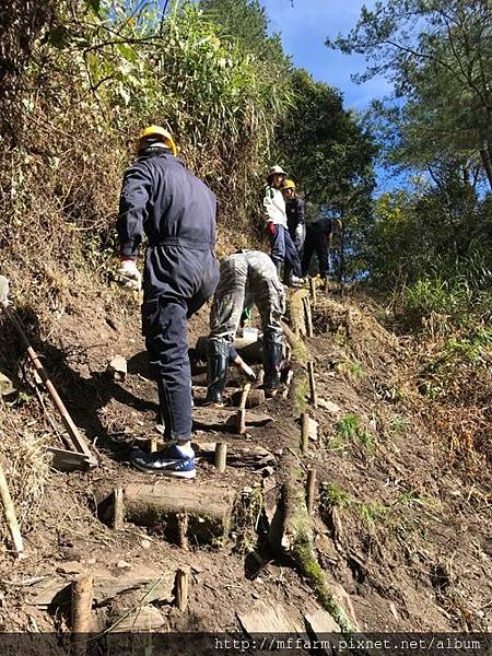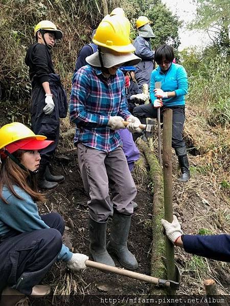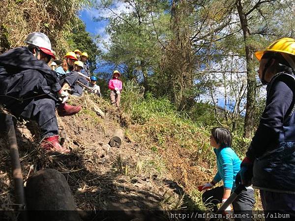 很多同學都是第一次接觸,甚至少有機會像這樣一整天待在山林裡,體驗到開路與步道製作的辛勞,而農場的手作步道製作難度又是非常不簡單,可以說是讓部分同學們差點崩潰......。