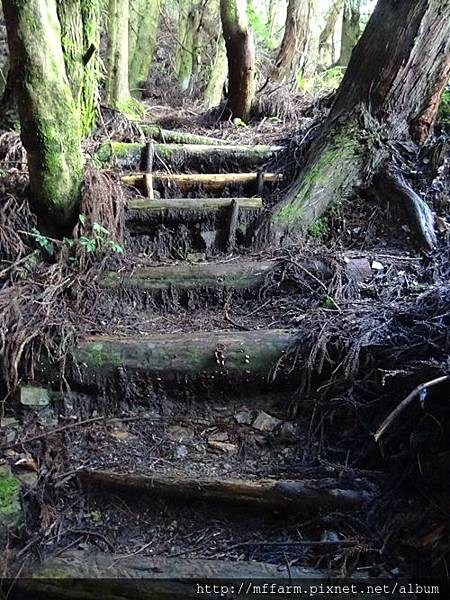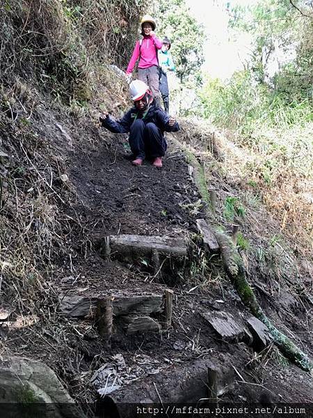 這段路有些過於陡峭,曾經做過的石頭階梯,已經毀損不堪,必需先清除上面的雜草與土堆,再從旁找些石頭來擺放。