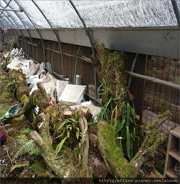 而這次工作環境不再是從前熟悉的樹苗室,轉換到阿雄大哥的蘭蕨園和山野草室,但剛開始的兩天我們先幫忙其他人做事情,不過這兩天真是個挑戰,第一天需要架著梯子爬上溫帶花卉區溫室兩層樓高的鐵架換塑膠布,有點懼高症的我,每分每秒都很緊張,怕不小心掉下去,而原住民大哥們卻完全不怕的在鐵架上移動,所幸四片塑膠布如期在一天內換完了;接著隔天修剪藏柏,拿著厚重枝剪修剪又密又粗的樹枝,除了相當費力,還弄得全身都是樹枝上的粉塵,狼狽不堪,拿衛生紙擦臉都是黑的呢!