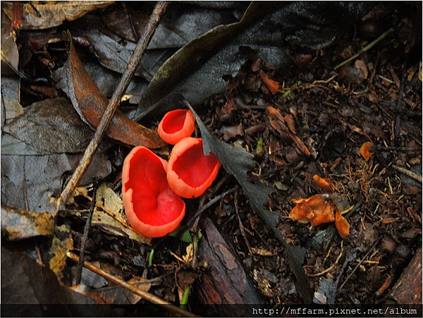 顏色很漂亮的休氏肉杯菌,像紅色的木耳。