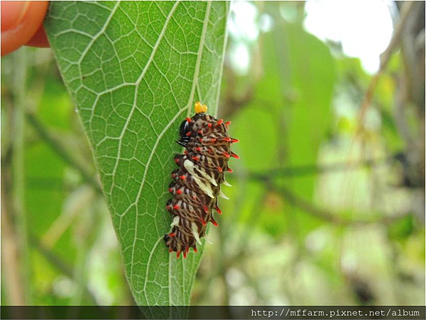 也找到7隻大紅紋鳳蝶和曙鳳蝶的幼蟲