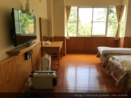 CHECK IN後,房間的東西一應俱全,只不過沒有冰箱,也不需要冷氣,因為海拔兩千一百多公尺的梅峰氣溫涼爽宜人,夜闌時甚至還有些涼意。