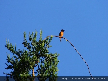 次日早晨賞鳥,看見了許多不同的鳥兒,有黃腹琉璃、白尾鴝等,鳥兒們真的很開心,在自由、清新的樹林裡飛舞著,隨著導覽員的解說,凝神貫注地欣賞這些平常在低海拔平地上看不到的美麗身影,心裡覺得豐足充實。