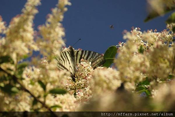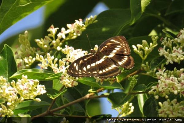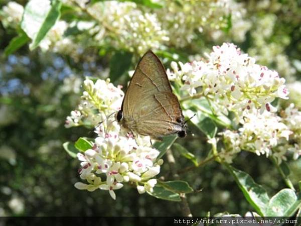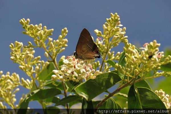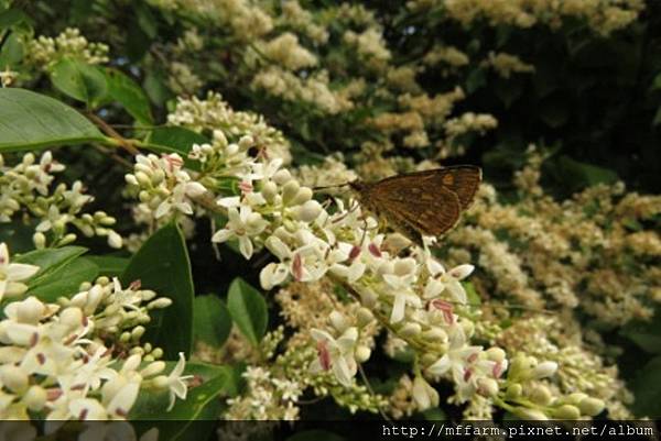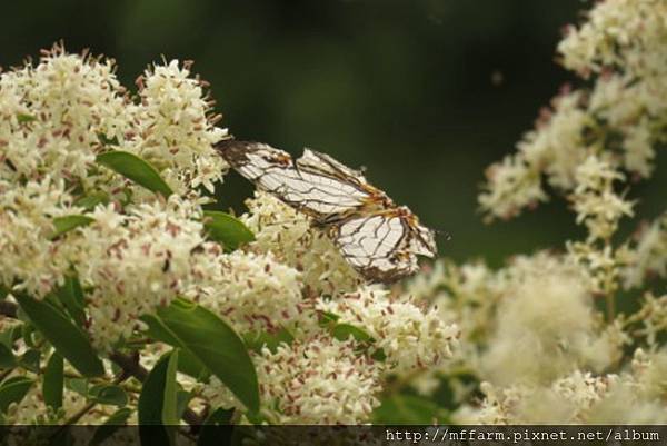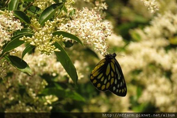今年梅雨來得晚,溫木區的斑葉女貞於5月底6月初盛花時,連續晴天,蝴蝶大爆發,特別是粉蝶和灰蝶,其中有3種灰蝶是梅峰新記錄(高砂燕灰蝶、田中洒灰蝶、褐翅青灰蝶)且都是特有種。將這幾年的觀察統計一下,居然有47種蝴蝶。全臺約有400種,在農場溫木區的斑葉女貞周遭就可以看到全臺1/8的種類,可謂梅峰蝴蝶樹第一名。