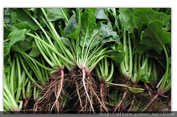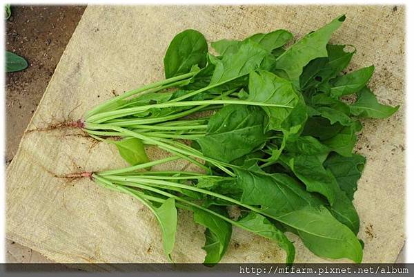 食安問題愈來愈受重視的時期,農場種植許多有機蔬菜,不灑農藥,使用各式物理、生物防治等方法來替代。不施化學肥,運用枯枝落葉、廚餘、動物排遺自製肥料,也使用豆科植物做綠肥,其中所含的氮是葉菜長大的關鍵之一。因此,可以安心購買農場菠菜,全株可食,不用怕最營養的根莖部會有農藥殘留。梅峰的菠菜其實全年都有機會可見,但盛產期約在5到11月,觀顧農場時別忘了帶ㄧ把回家,親身體會菠菜的美味,把好康傳達給更多人。