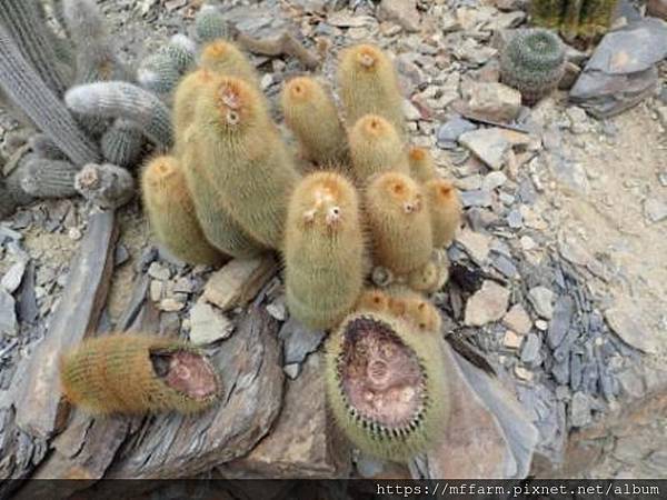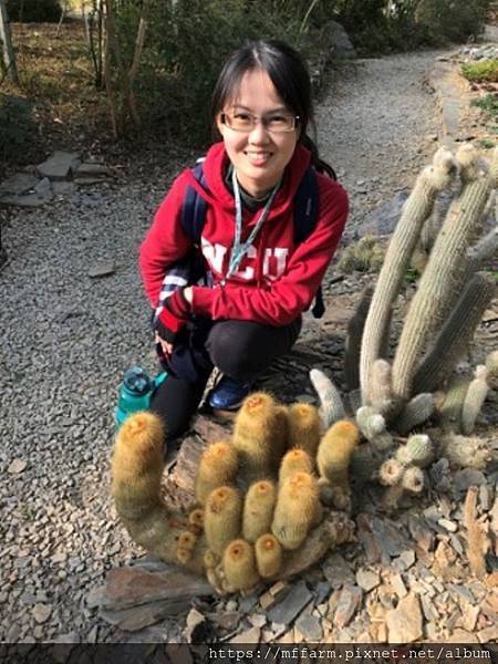 旱生植物區仙人掌-金晃丸 ,園方辛苦培育約三十年了。 忽聽「哇」一聲,目睹慘遭同組幼童誤觸,哭無淚,不知是原來即受傷,還是遭毒手,慶幸於仙人掌受傷前已合拍留影,機會教育,植物生長,代表生命的尊重,若有幼童隨行請注意。
