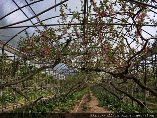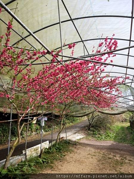 桃花廊的桃花多已由花轉為葉,現在仍具看頭的,非蟠桃莫屬了。