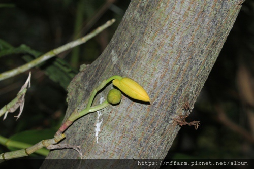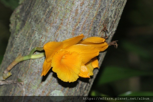 進行維管時發現金草蘭(Dendrobium aurantiacum)有兩朵已經轉色的花苞。(20190712攝)
