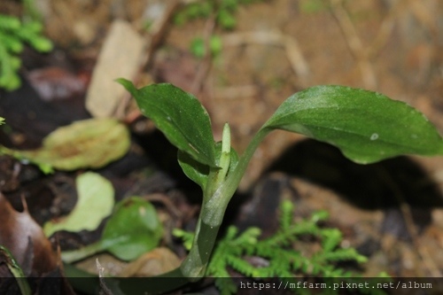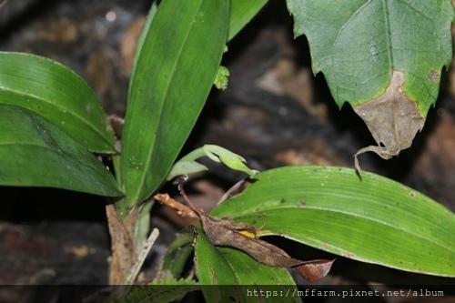 單囊齒唇蘭(Odontochilus inabai)今年也長出花軸囉,希望能順利開花。