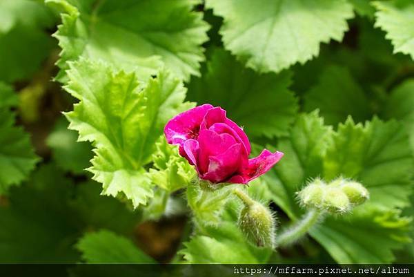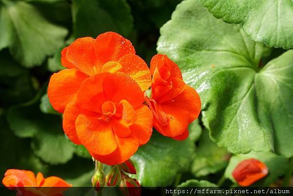 紅花天竺葵圓圓的葉子和圓圓的花,
