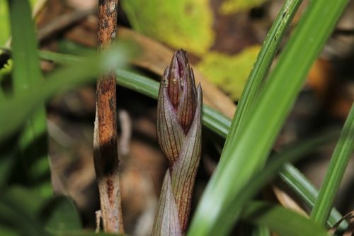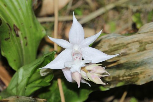 阿里山根節蘭(Calanthe arisanensis)有幾株沒有受到過年期間寒流的影響,現在已有花苞長出。