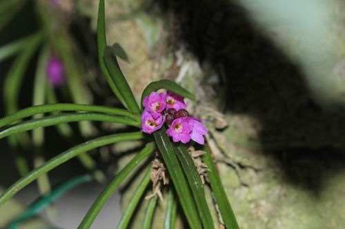 鹿角蘭(Ascocentrum pumilum)的花期頗長,從12月到隔年3月都能見到花,目前蘭園裡大部分的都快凋謝了,剩下一兩株還會開一陣子。