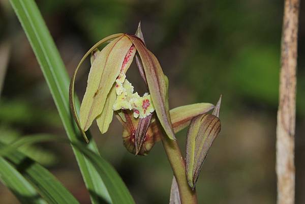 盛開的不只有臺灣一葉蘭,馬鞭蘭(Cremastra appendiculata)也正盛開中,在蘭園和附近的森林都能看到。