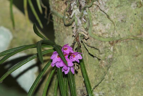 先前修樹搶救下來的蘭花終於綻放了,比對圖鑑是首次在農場發現的新竹風蘭( Thrixspermum laurisilvaticum)。