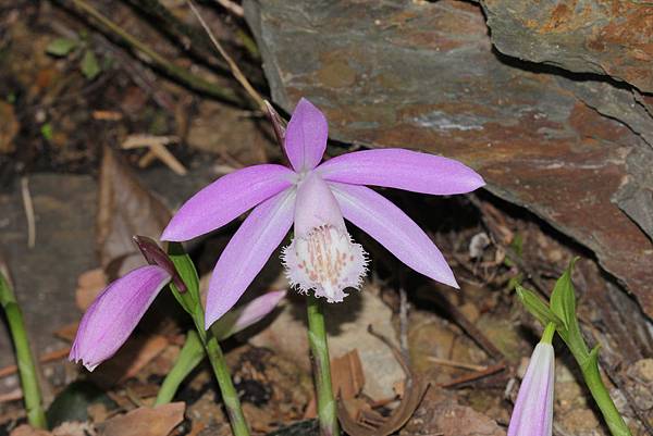 臺灣一葉蘭(Pleione bulbocodioides )綻放了,最近在蘭園和生態園的石壁、場區內的某些山壁都能看到喔。