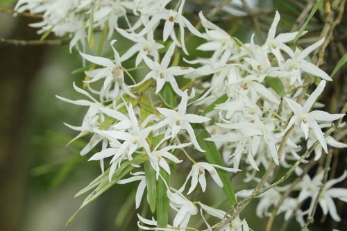 蘭園的石斛(Dendrobium moniliforme)在本月初盛開了,此時梅峰周圍的野生植株早已進入尾聲。