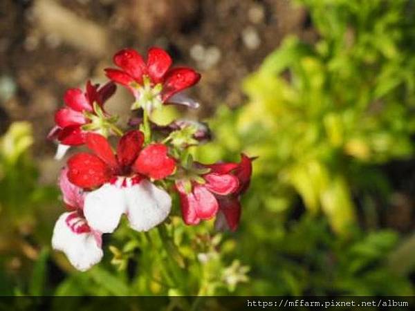 囊距花(紅白旗)~過年顏色好應景。