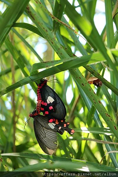 正在交尾的多姿麝鳳蝶被路過的雄蝶打擾!