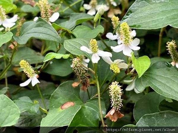 魚腥草 三白草科~摸摸它的葉子會有一股特殊的味道,來猜猜看像什麼味道呢?