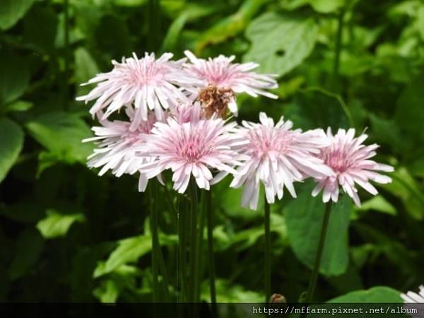 花是粉紅色的,跟平時我們常見的蒲公英花是黃色的不一樣。