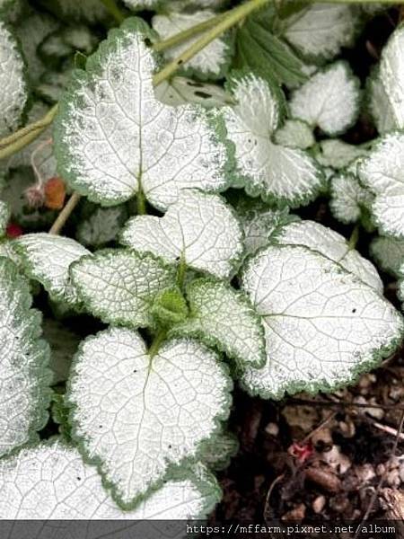 除了觀花,我們也可以觀察周遭的葉子也是很漂亮的,很像葉子擦上銀白色油漆筆也像是冬天附上一層霜的感覺。