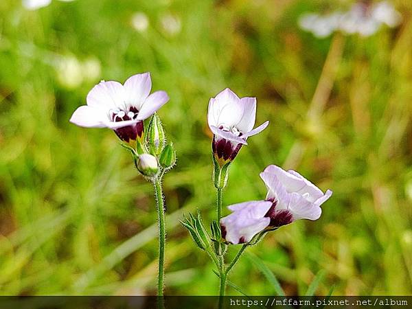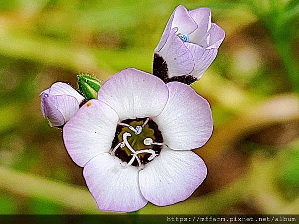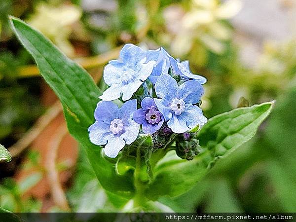 清爽的藍色小花,成熟的種子有錨刺,會沾附在衣物或動物的毛上