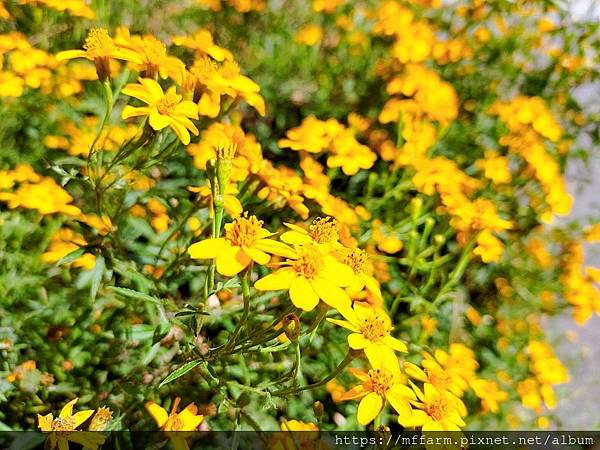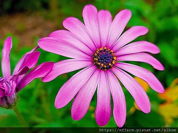 藍眼菊特別之處是因為花心呈現藍色而得名,盛開時花量多且整齊