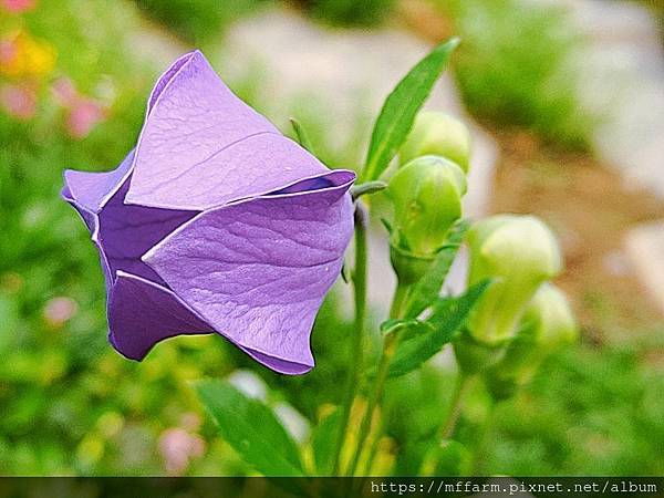含苞的花朵像一顆氣球一般,蘿蔔狀的根部是一種藥材