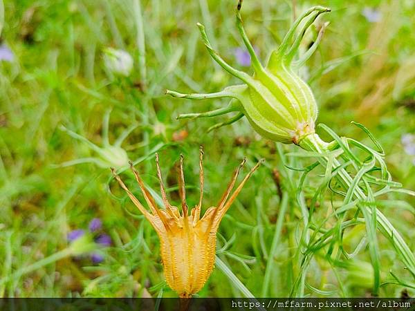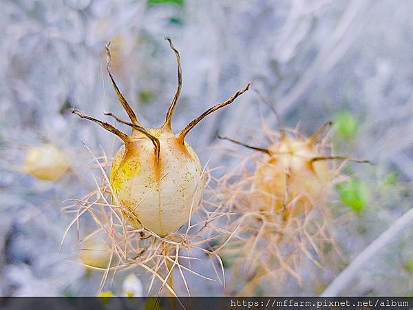 不同階段的黑種草給予人的感受也不同,成熟的果實像顆氣球一樣,是造型可愛的乾燥花材