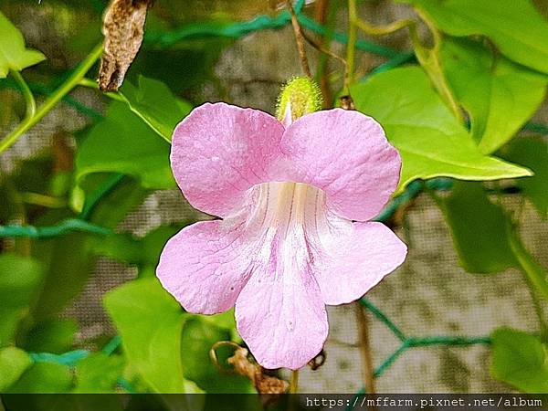 或稱紅萼藤,藤本植物,紅色的花萼下是深紫色的管狀花,造型像風鈴一般
