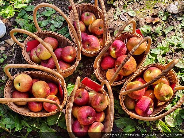 11月採果季,盛裝滿蘋果的果籃,讓人有種收穫滿滿的感覺