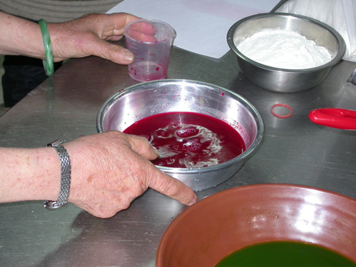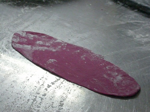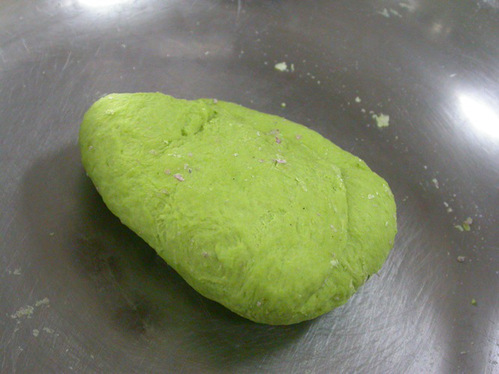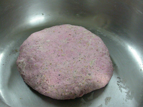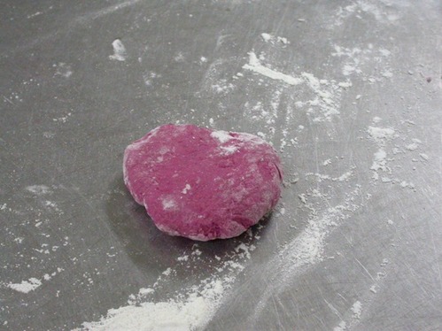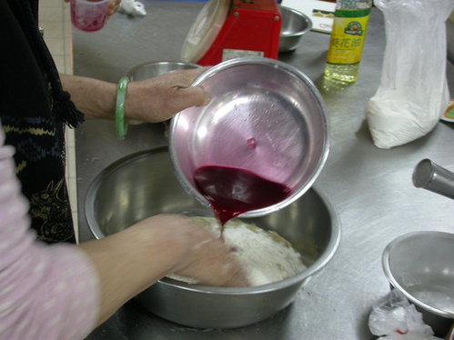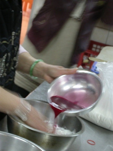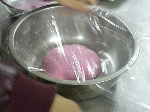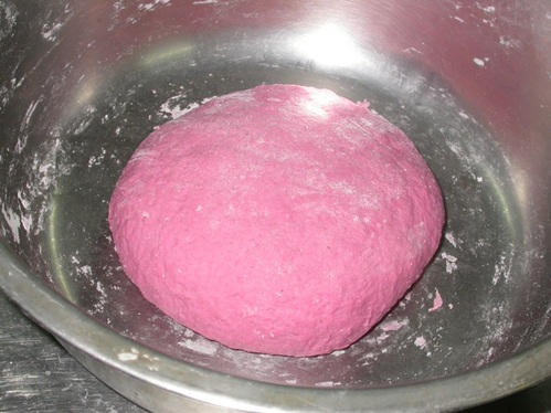 ↑不斷搓揉,然後就完成一個漂亮的粉紅色麵糰了!