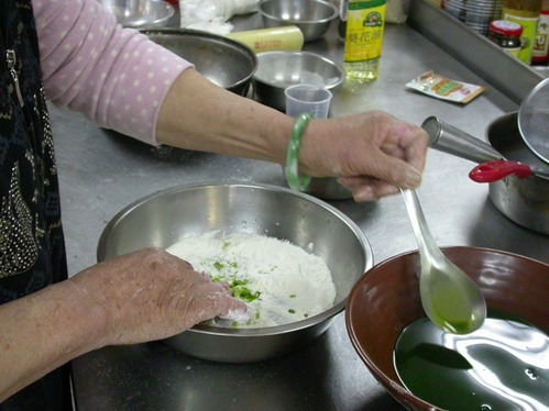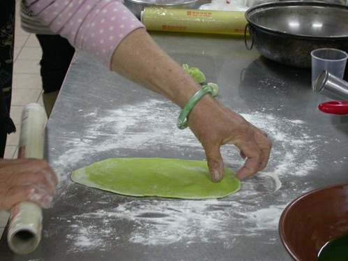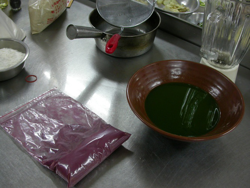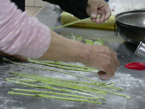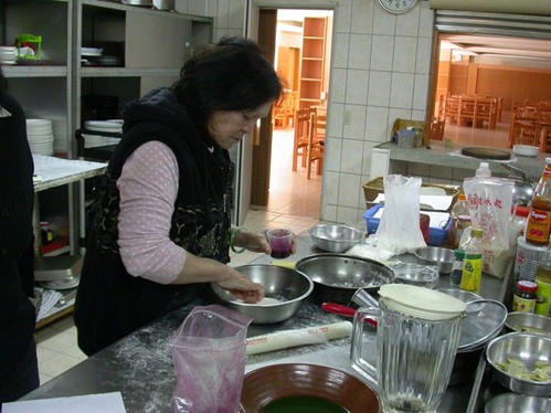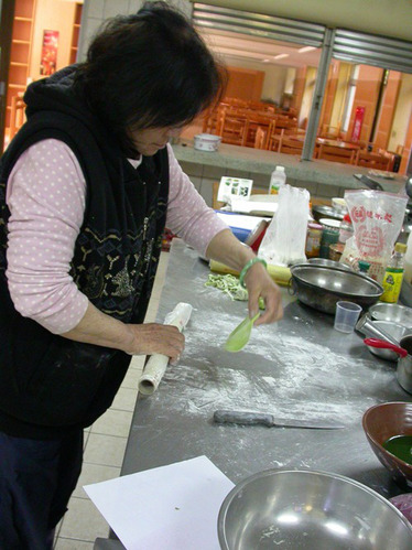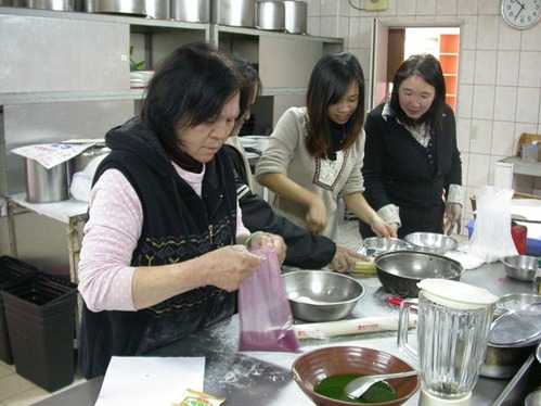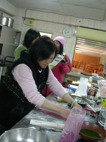 梅峰經營組的同仁們特地在10.12.29這天央託農場資深同事多咪阿姨在廚房裡利用甜菜根和菠菜來賦予麵食不同的顏色和滋味。