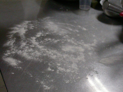 ↑將麵糰放在上面就不會和桌面黏在一起了。