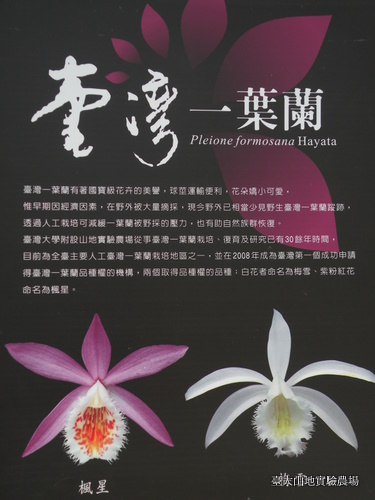 臺大山地實驗農場歷經30年歲月,由國內外蒐集種源,積極繁殖研究,並開發品種性狀調查等資料,近年已獲農委會頒發「梅雪」、「梅月」、「楓星」、「楓漫」等植物品種權證書,成為全世界第一個擁有一葉蘭植物品種權的單位。梅峰農場尚選育約20個穩定品系,準備申請品種權,衷心期盼這種美麗的蘭花能永續繁衍復育。