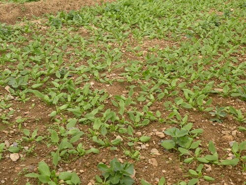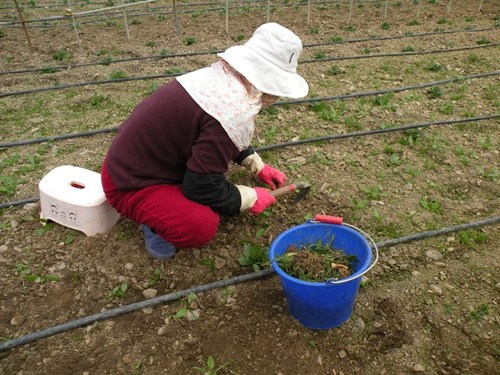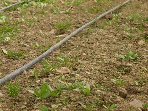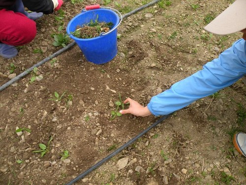 植物們要長大,就需要一定比例的空間,灑播之後,成為小苗的菠菜與菠菜之間,也會有太擠、靠得太近,互相搶奪養分而長不大的問題,於是在灑播後約10-20天之內,就要陸續開始進行疏苗的動作,一邊疏苗,一邊拔除小草,全部疏苗完的整個過程大概要15個工作天左右。