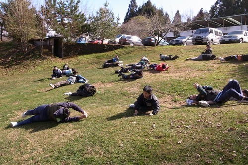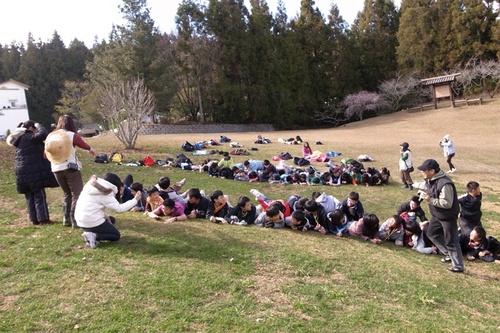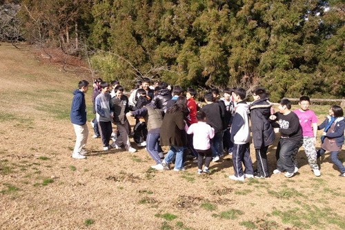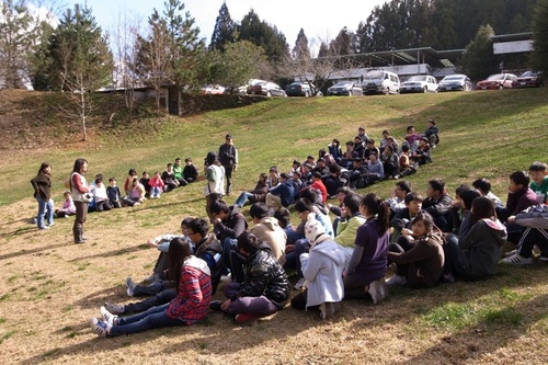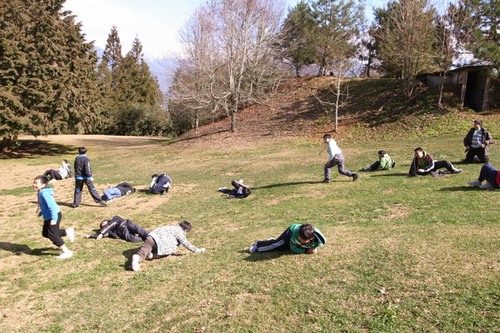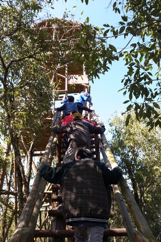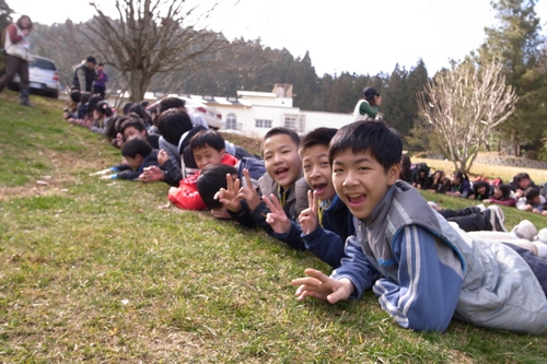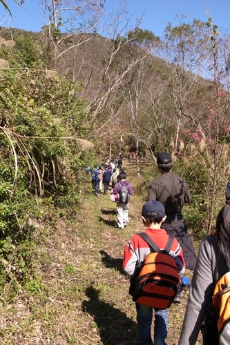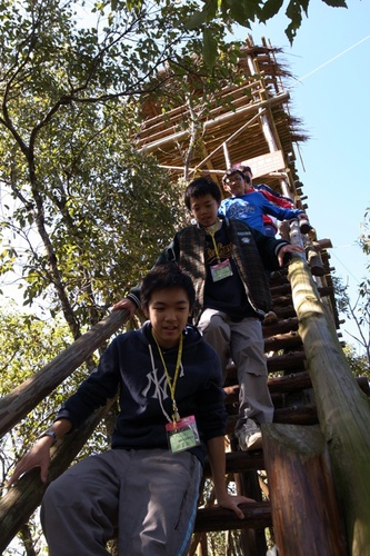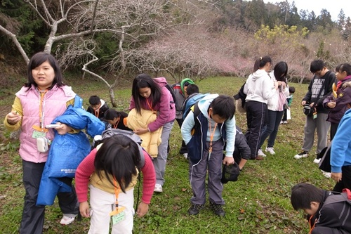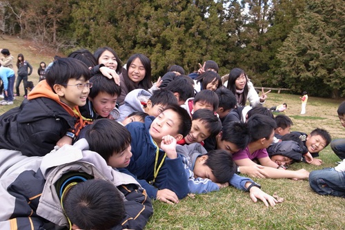 東山高中國中部七十八位的大小朋友們首次在寒假來到梅峰,這個在地理位置上與學校所在位置不算相隔太遠的所在,卻有著與平地極端不同的風景和物候。解說員聖琳姐姐、阿如姐姐和薛姐姐在宣佈完注意事項後,就帶著大家在梅峰最美的伴月坡草地上玩起「人肉戰車」和「人肉金字塔」的遊戲,展開了我們對這處地方的體驗和認識。