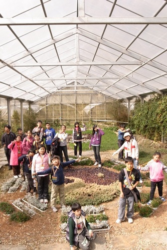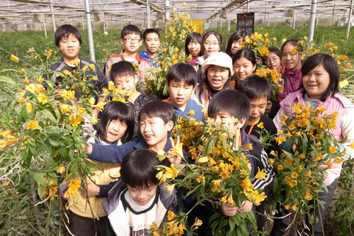 ↑一起在梅峰的百合水仙溫室裡幫忙除殘花。
